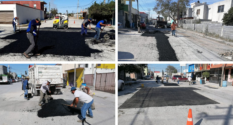 REYNOSA, TAM.- Brigadas de bacheo del Gobierno Municipal repararon carpeta asfáltica en las colonias López…